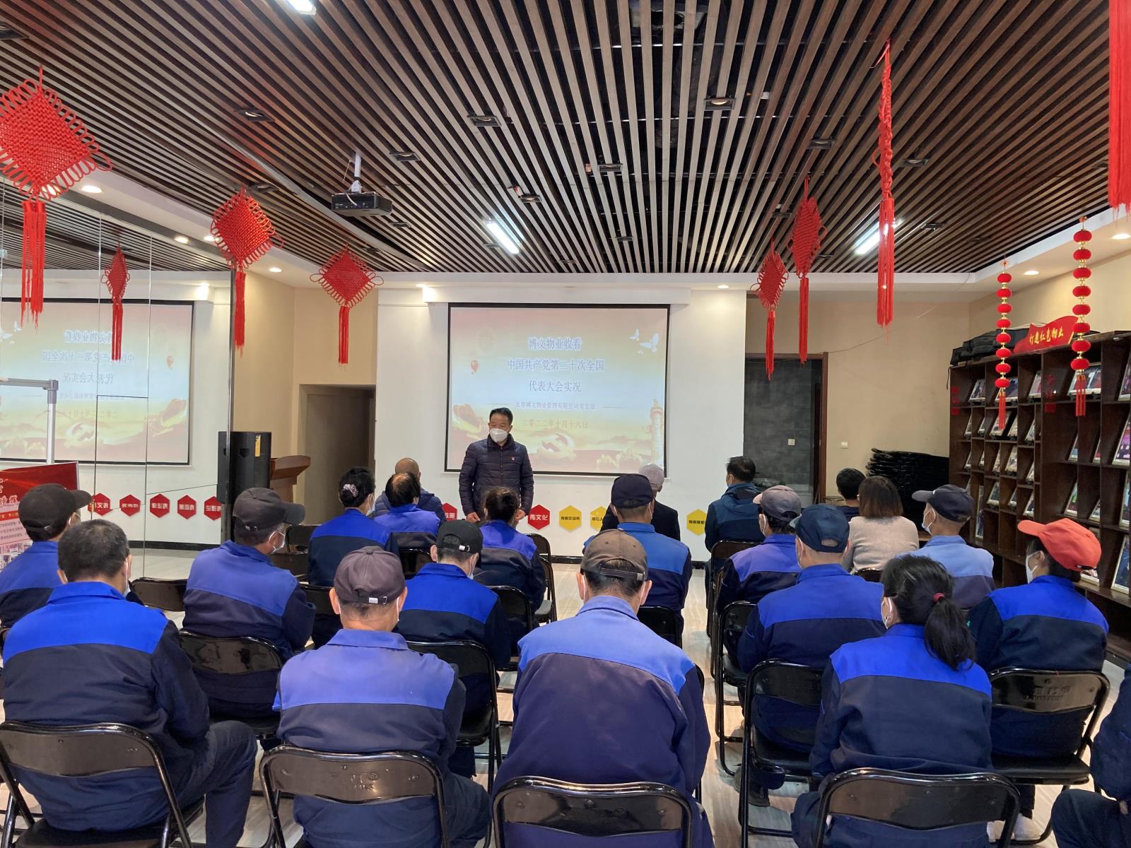 16日上午10時(shí),長(zhǎng)春博文物業(yè)管理有限公司黨支部書記遲貴、副書記巴特爾組織所有黨員及員工在紅驛舫黨群服務(wù)站觀看中國(guó)共產(chǎn)黨第二十次全國(guó)代表大會(huì)實(shí)況直播。